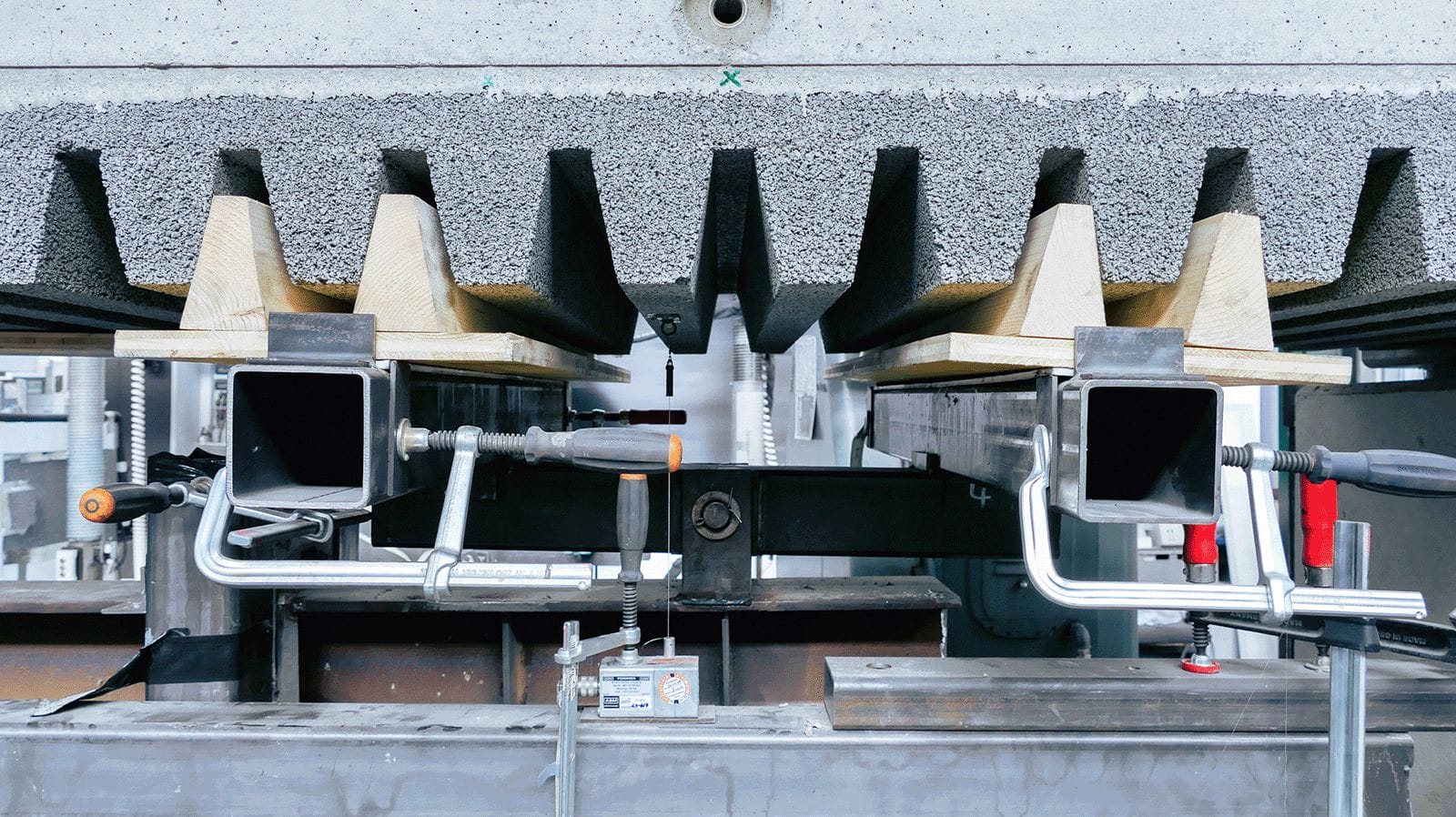 To obtain approval from the Federal Railway Authority, the Supporting Structures and Noise Abatement division of MFPA Leipzig GmbH carried out a dynamic bending test using an exemplary element of a noise protection wall. The test piece was a reinforced concrete noise protection element with an observer shell, as is used by Deutsche Bahn.