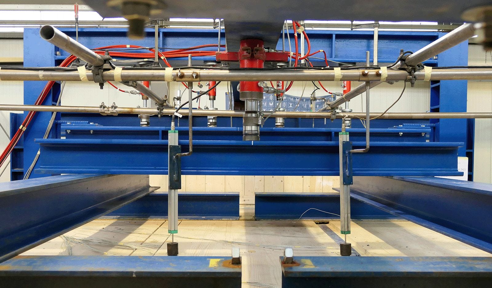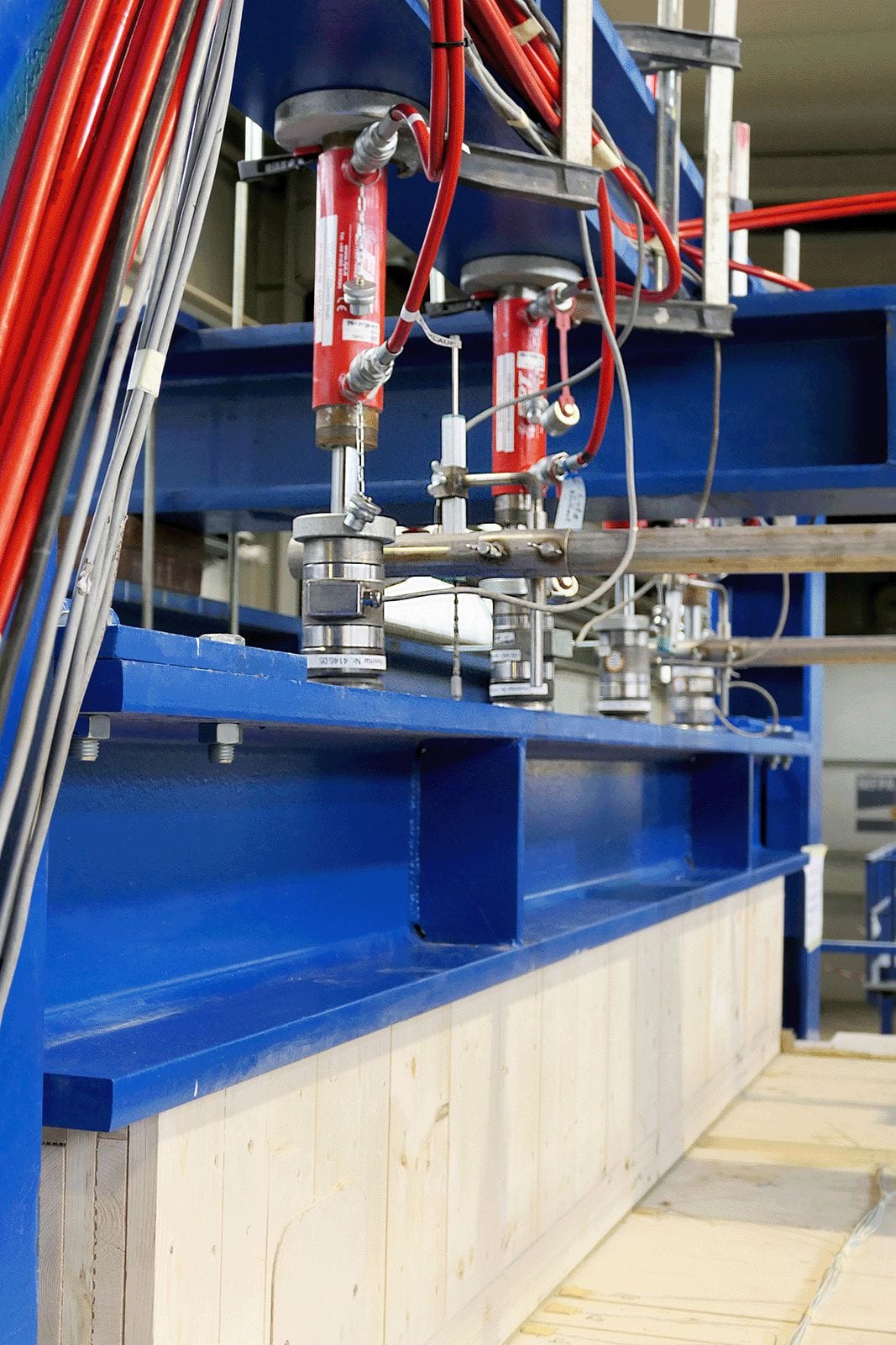 In order to simulate a multi-storey design, realistic mechanical stress was applied to the wall and ceiling samples. It was thus verified that the requirements with regard to the bearing capacity, tightness of the room and the insulation criterion were complied with in a fully developed fire scenario according to the standards, not only on the individual ceiling and wall components but also with regard to the connection area.
