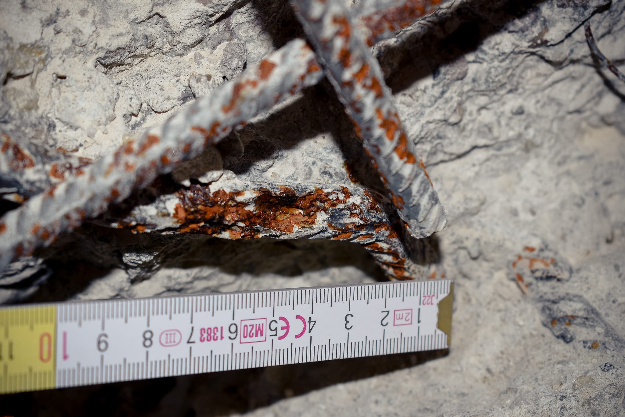 Corrosion of the steel can occur, if the steel surface in the concrete is depassivated through chlorine penetration. Anodic (active) and cathodic (passive) areas will form on the steel surface in this process. The corrosion current that is present in all corrosion cells causes a polarisation of the anodes and cathodes, and the resulting mixed potential that can be measured on the concrete surface is changed depending on the position. The likelihood of corrosion increases in line with negative potential values, and high potential gradients indicate a greater likelihood of corrosion.
