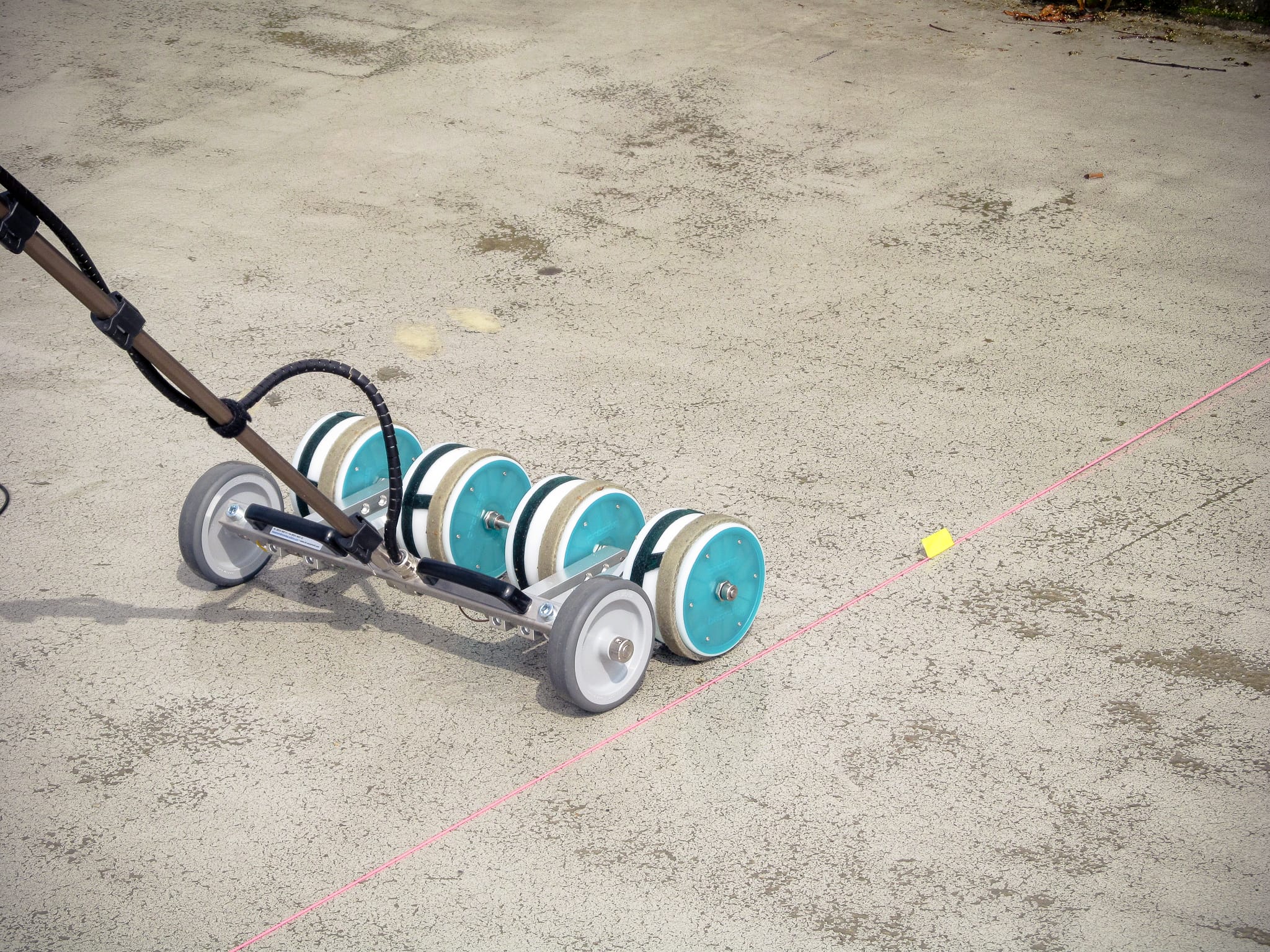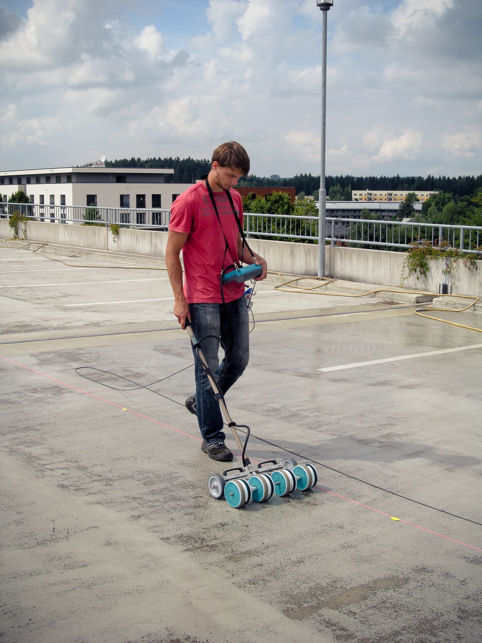 We perform potential field measurements using the Canin+ device (by Proceq). A wheel or rod electrode is used, depending on the requirements.